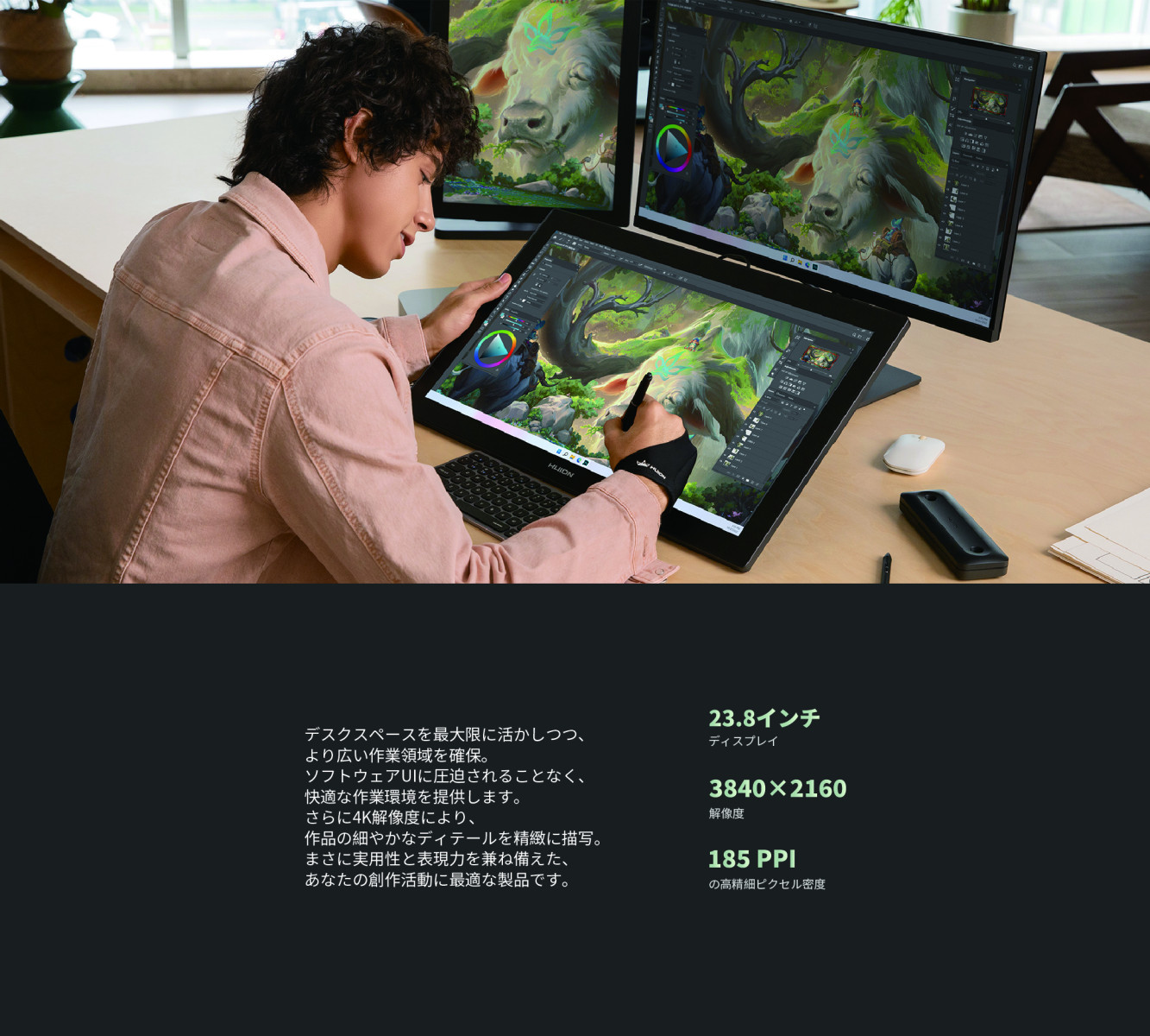 ・23.4インチ・4K UHD(3840×2160)高精細ディスプレイ搭載。
