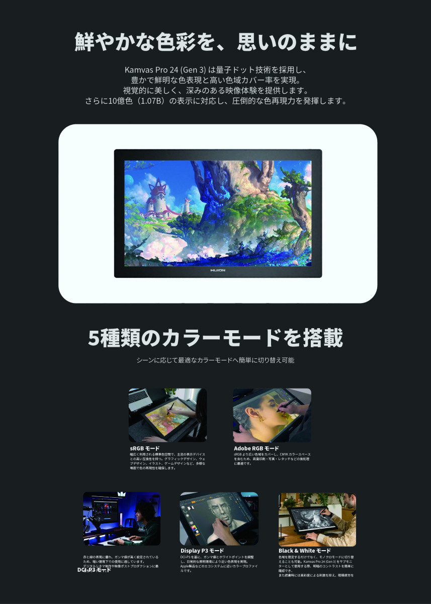 ・140% sRGB/99% AdobeRGB/99% DCI-P3対応の広色域。