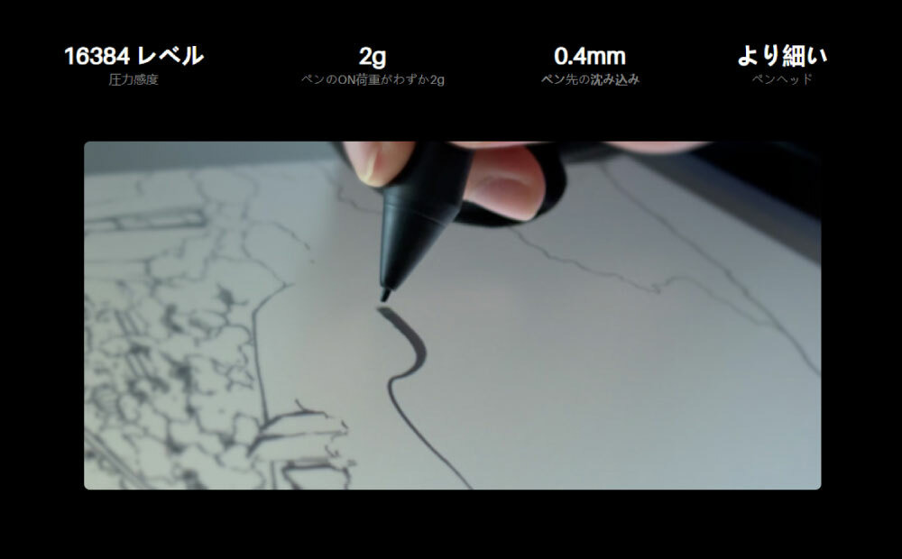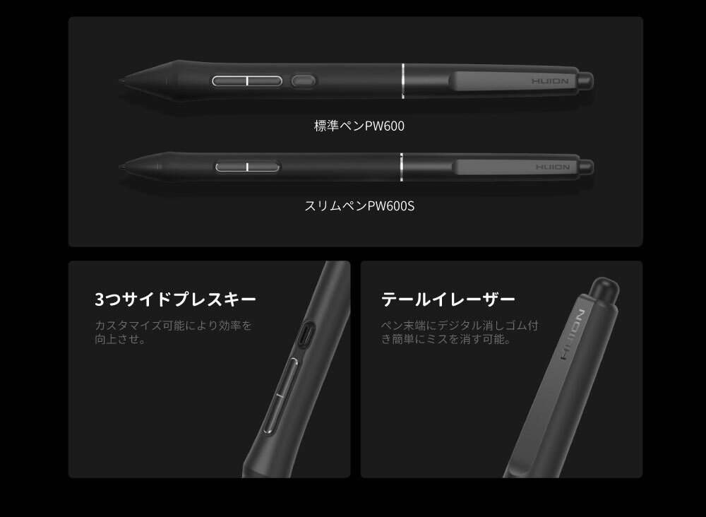 ・PenTech 4.0ペン(PW600)で16384段階の筆圧と±60°傾き検知。
