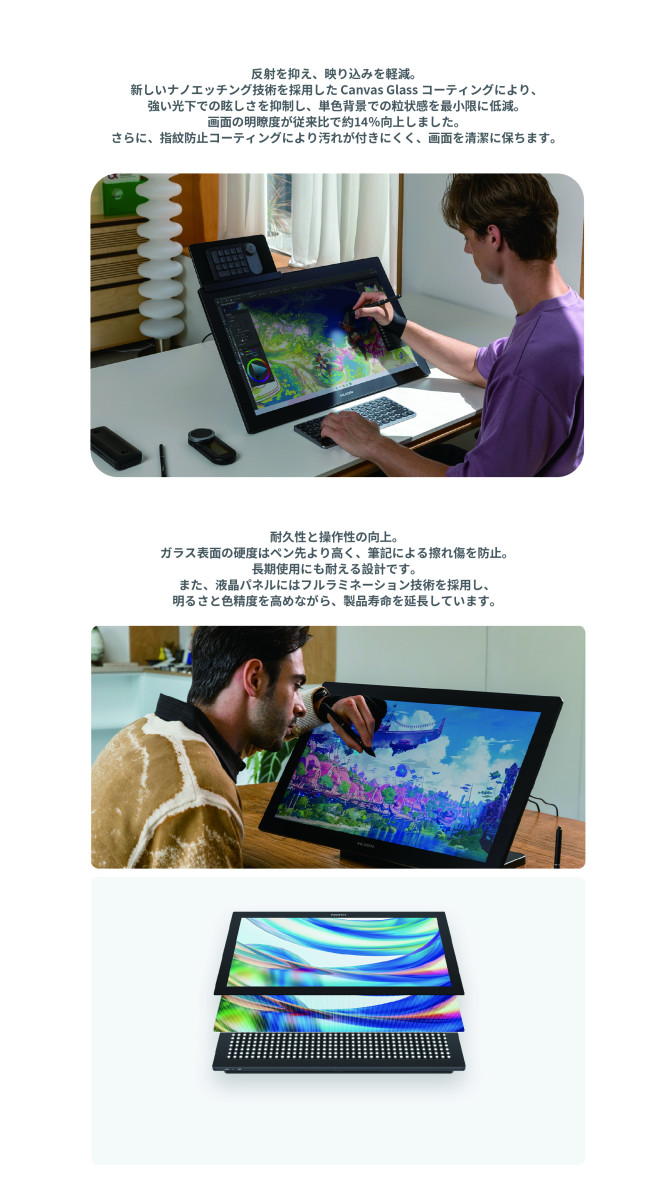 ・第2世代アンチグレアエッチングガラスで紙のような描き心地。